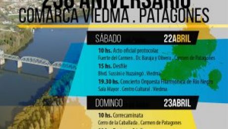 Con un cronograma cargado de propuestas culturales, deportivas y la realización del gran desfile aniversario, este fin de semana Viedma y Patagones celebrarán un nuevo aniversario. Mañana, sábado 22 de abril, a partir de las 15 en la ciudad de Viedma, se realizará el Desfile Aniversario, en la intersección de los bulevares Sussini e Ituizangó,