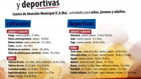La Municipalidad de Viedma continúa sumando actividades deportivas y culturales, para niños, jóvenes y adultos en el Centro de Atención Municipal (C.A.Mu), ubicado en calle Maizani, entre Vargas y Baltar del barrio Lavalle. Por esta razón, se recuerda que las inscripciones siguen abiertas para participar de múltiples de propuestas que se llevan a cabo en