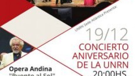El próximo martes 19 de diciembre, la Universidad Nacional de Río Negro (UNRN) festeja su 10º aniversario con el concierto ópera Andina “Puente al Sol” en el Centro Municipal de Cultura. Con entrada libre y gratuita, la función comenzará a las 20 en la Sala Mayor y estará dirigida por Damián Sánchez. Además, el concierto