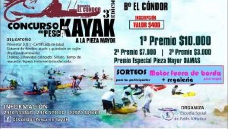 A través de la comisión organizadora de la competencia, se informa que la 3ª edición del concurso de pesca en Kayak “Memorial de Malvinas”, se reprograma para este domingo 26 de noviembre, desde las 13. El concurso tendrá una duración de dos horas con premiación a la pieza mayor peso, y como estaba previsto, se