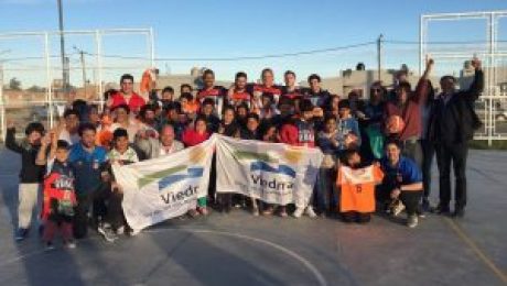 Los chicos que practican habitualmente básquet en el playón del barrio 22 de Abril, disfrutaron de una tarde cargada de deporte junto a los jugadores del Club Deportivo Viedma. Durante la jornada, los chicos recibieron algunos consejos sobre técnicas de este deporte, además de disfrutar un juego recreativo promoviendo la integración y el «juego limpio».