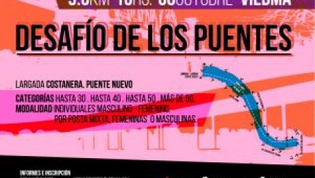 En el marco de mes de la Capitalidad, este domingo 8 de octubre, la Municipalidad de Viedma a través de la Subsecretaría de Deportes, llevará adelante la carrera de atletismo el “Desafío de los Puentes”. Las inscripciones son gratuitas y se pueden realizar vía mail a viedmadeportes@hotmail.com, o en el Gimnasio Municipal Fioravanti Ruggeri de 9