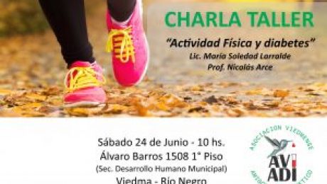 En el marco del programa educativo comunitario en diabetes 2017, el sábado 24 de junio, a partir de las 10, la Asociación Viedmense Amigos del Diabético (A.Vi.A.Di) brindará una nueva charla taller denominada: “Actividad física y diabetes”. La charla, se desarrollará en la Secretaría de Desarrollo Humano de la Municipalidad de Viedma, ubicada en Álvaro